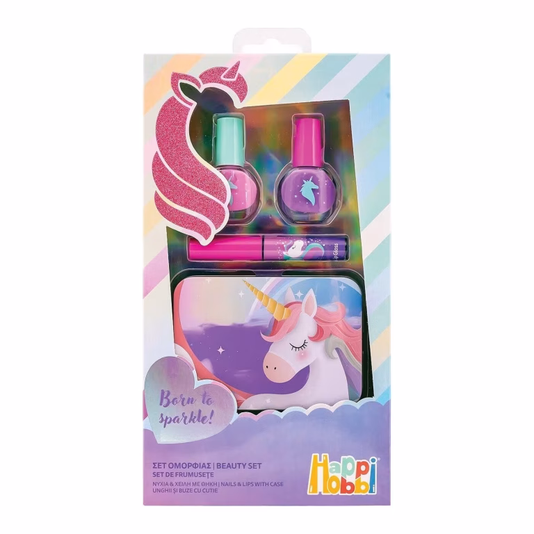HAPPIHOBBI Σετ Ομορφιάς Νύχια And Χείλη Με Θήκη Για 6+ Χρονών – Μονόκερος Κωδ. 1081-60003