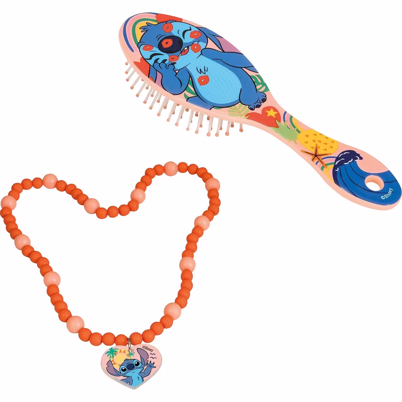 Παιδική βούρτσα μαλλιών με κολιέ, με αγαπημένο σχέδιο Disney Stitch. Ιδανική για απαλό ξεμπέρδεμα και καθημερινή χρήση, ενώ το κολιέ ολοκληρώνει το σετ και χαρίζει έξτρα χαρά στα παιδιά. Κατάλληλη για παιδιά 3+ ετών. Διαστάσεις συσκευασίας: 27,5 x 16,5 εκ.