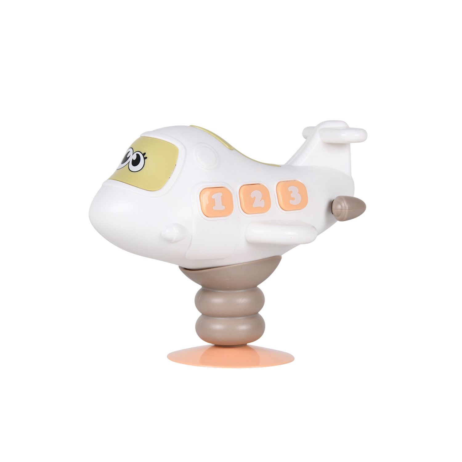 Παιχνίδι αεροπλάνο Kaichi με φωτάκι, μουσική και βεντούζα για σταθερή τοποθέτηση, ιδανικό για παιδιά 12+ μηνών, που ενισχύει την αισθητηριακή ανάπτυξη και τον συντονισμό μέσα από το παιχνίδι.
