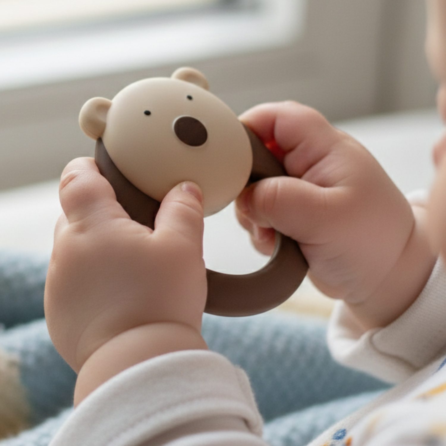 Κουδουνίστρα Αρκουδάκι Kaichi για μωρά από 0+ μηνών, με απαλό ήχο και εργονομικό σχέδιο, που ενισχύει την αισθητηριακή ανάπτυξη και τη λεπτή κινητικότητα μέσα από το παιχνίδι.