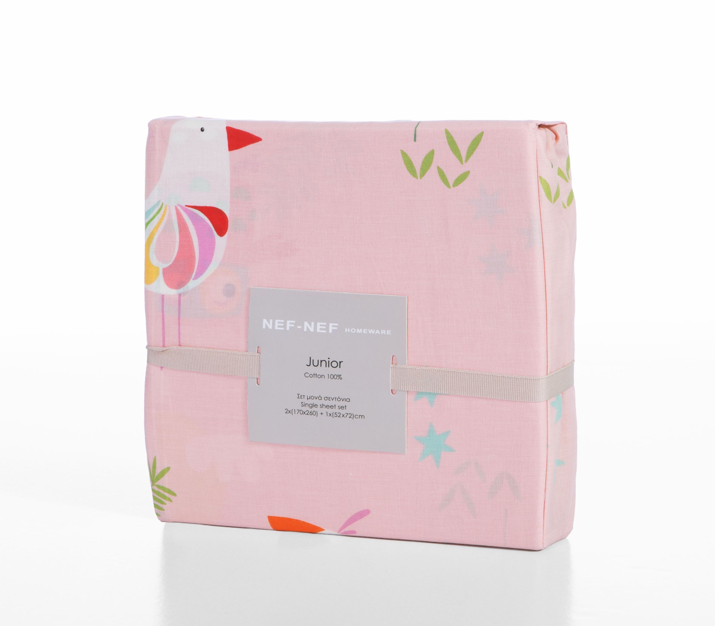 Nef Nef Παιδικά σετ σεντόνια μονά Birds mania 170X260 Ροζ Κωδ. 039535