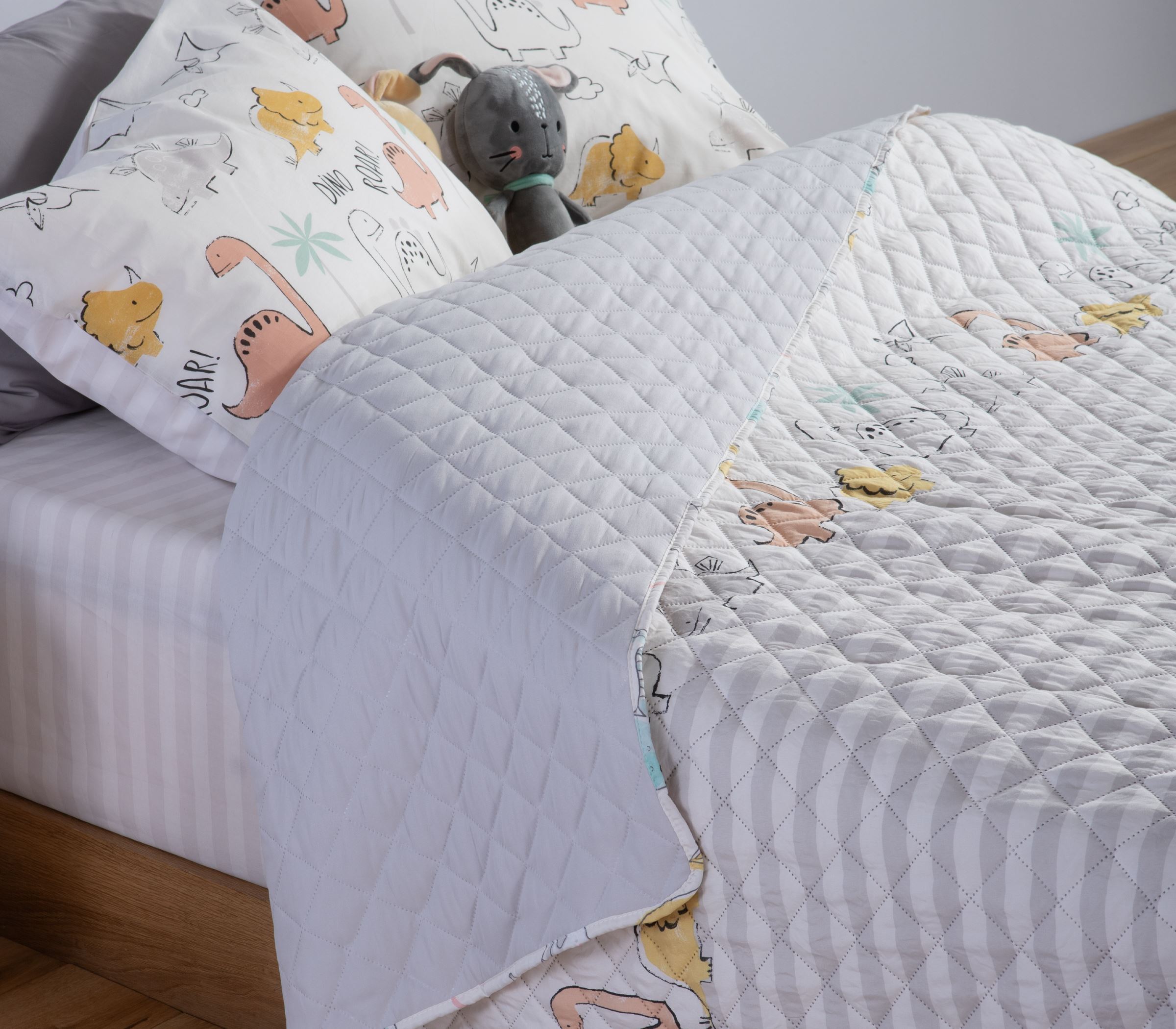 Nef Nef Παιδικό κουβερλί μονό Dinosaur art 180X240 Εκρού/Γκρί Κωδ. 039780