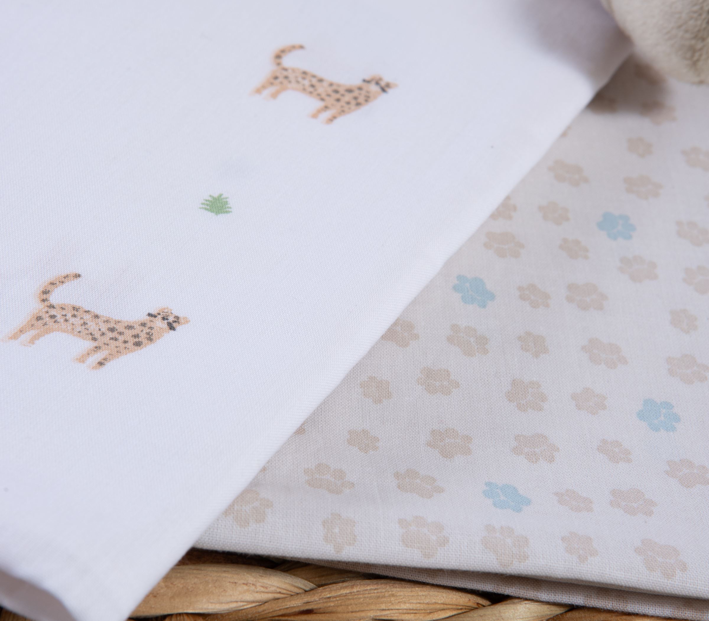 Βρεφικά σεντόνια λίκνου Nef Nef Jungle in Motion από 100% βαμβάκι, απαλά και αναπνεύσιμα για άνετο ύπνο. Με χαριτωμένο σχέδιο ζούγκλας. • Σετ 2 τεμαχίων • 100% βαμβάκι • Διαστάσεις: 70x120 εκ.